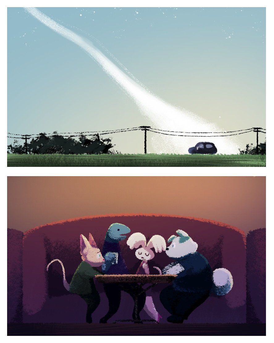 The story behind my 3rd year film 'Last Week' is intended to represent how social anxiety can alter a persons perspective of the world, and how destructive and detrimental it can be to someone's ability to experience new things and grow as a person - and to offer empathy to those who have struggled because of it. Originally, i had intended to draw a parallel between anxiety and doraphobia - the fear of fur, as I felt it would be an appropriate parallel for a hairless cat character surrounded by other animals, though this was dropped as I was having issues visually communicating this concept.