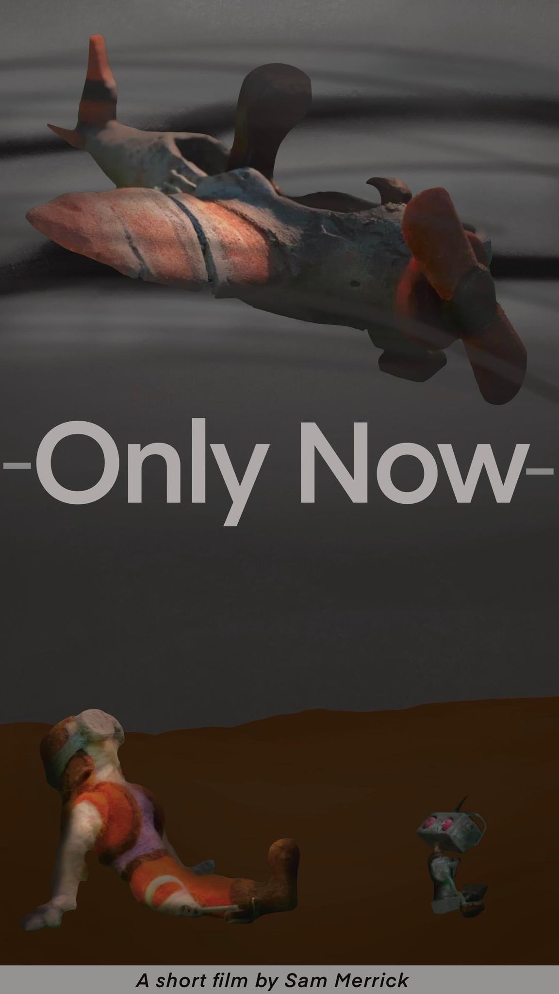 My short film, Only Now, is about a woman, named Alex, and her robot companion Dante. It is set in an apocalyptic wasteland without any plant life. Alex is seriously sick and needs a specific seed to stay alive. After using up most of the world's supply and being unable to find anymore after scanning the wasteland, the two travel by plane to search for these seeds without much success. Alex is becoming more and more desperate for this seed, taking more risks to survive, putting both herself and Dante at risk. The film is shot in stop-motion with added 2D elements and backgrounds, mixing the two styles.